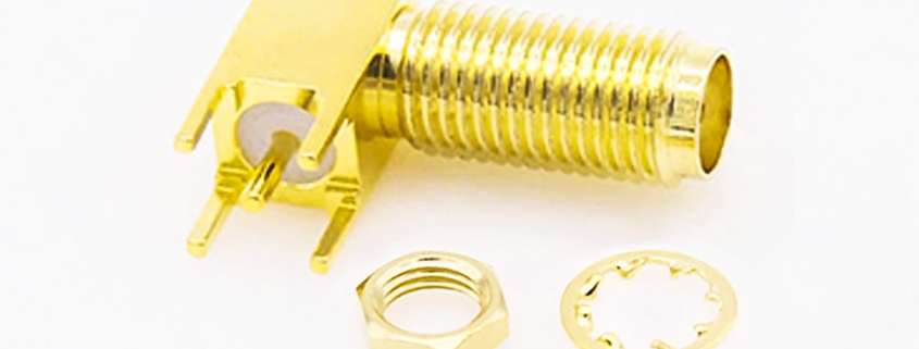 标签:SMA连接器, 母, 弯式, PCB安装/面板安装, 焊接, 穿墙/插孔,铜, 镀金, 标准, 50Ω