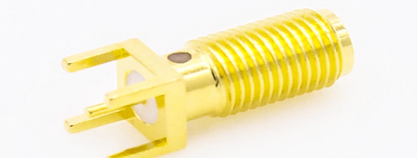 标签:SMA连接器, 母, 直式, PCB安装, 焊接, 插孔,铜, 镀金, 标准, 50Ω