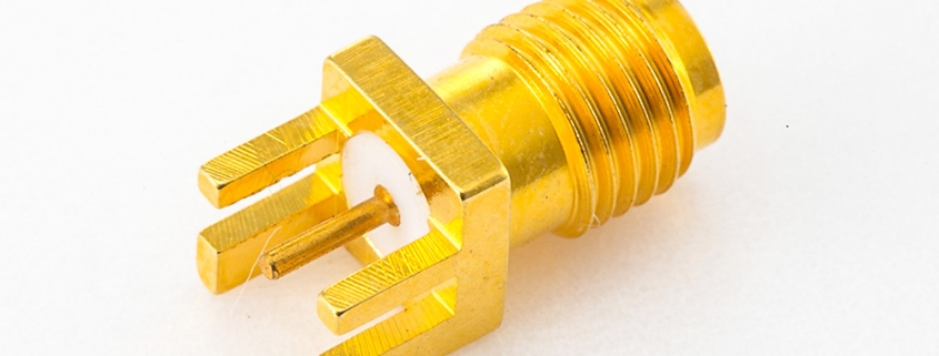 标签:SMA连接器, 母, 直式, PCB安装, 焊接, 卡板,铜, 镀金, 标准, 50Ω
