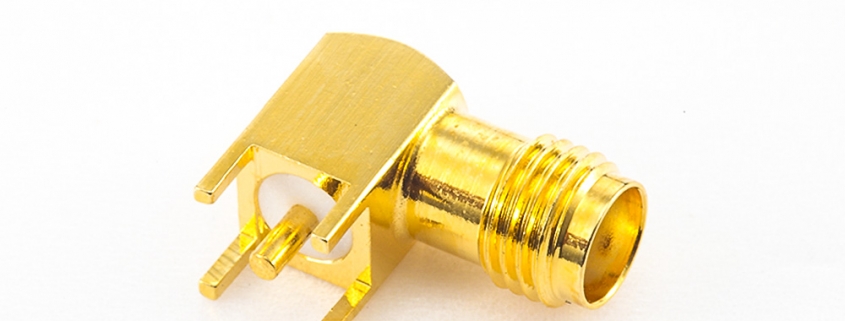 标签:SMA连接器, 母, 弯式, PCB安装, 焊接, 插孔,铜, 镀金, 标准, 50Ω