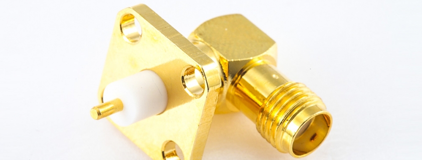 弯式SMA连接器母头焊板用于PCB安装4孔法兰