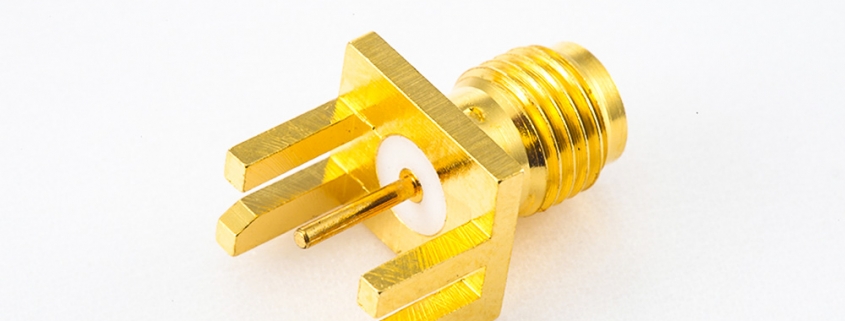 标签:SMA连接器, 母, 直式, PCB安装, 焊接, 卡板,铜, 镀金, 标准, 50Ω