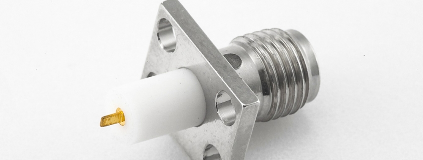 4孔法兰SMA连接器母头直式PCB安装焊板镀镍