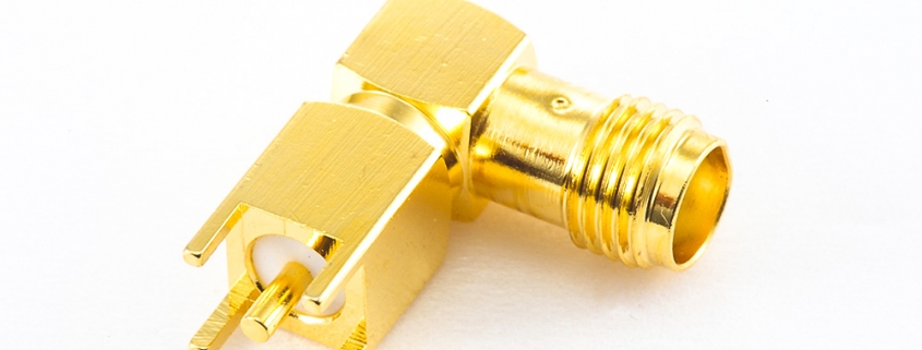 标签:SMA连接器, 母, 弯式, PCB安装, 焊接, 插孔,铜, 镀金, 标准, 50Ω
