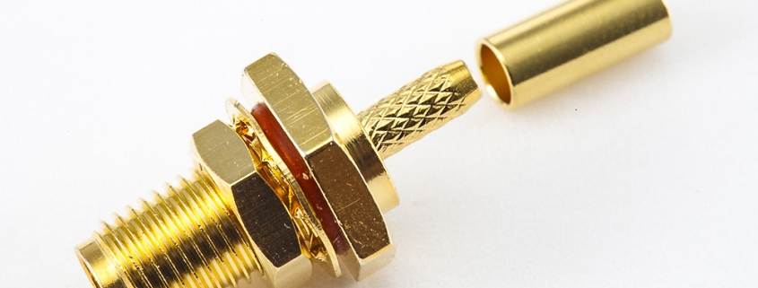 标签:SMA连接器, 母, 直式, 接线/面板安装, 焊接, 穿墙, 压接, RG174/RG316/LMR100, 防水, 铜, 镀金, 标准, 50Ω