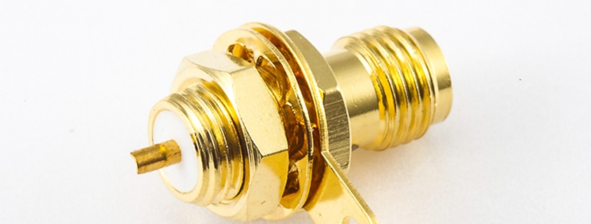 后锁穿墙SMA母头直式连接器PCB安装焊板接地