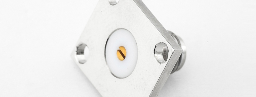 SMA连接器插孔直式PCB安装焊板4孔法兰