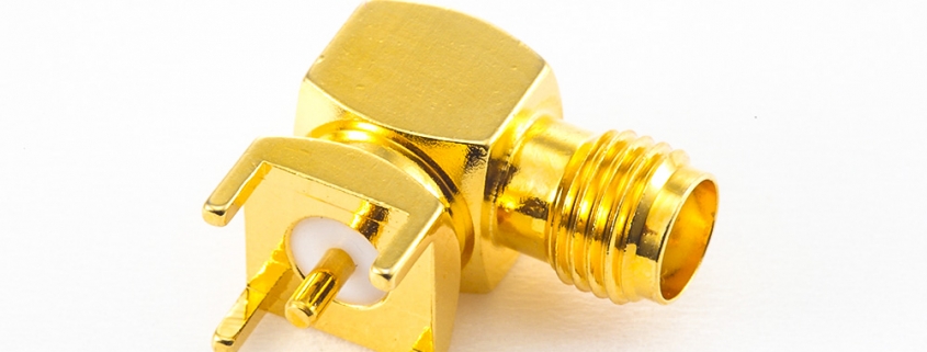 标签:SMA连接器, 母, 弯式, PCB安装, 焊接, 插孔,铜, 镀金, 标准, 50Ω